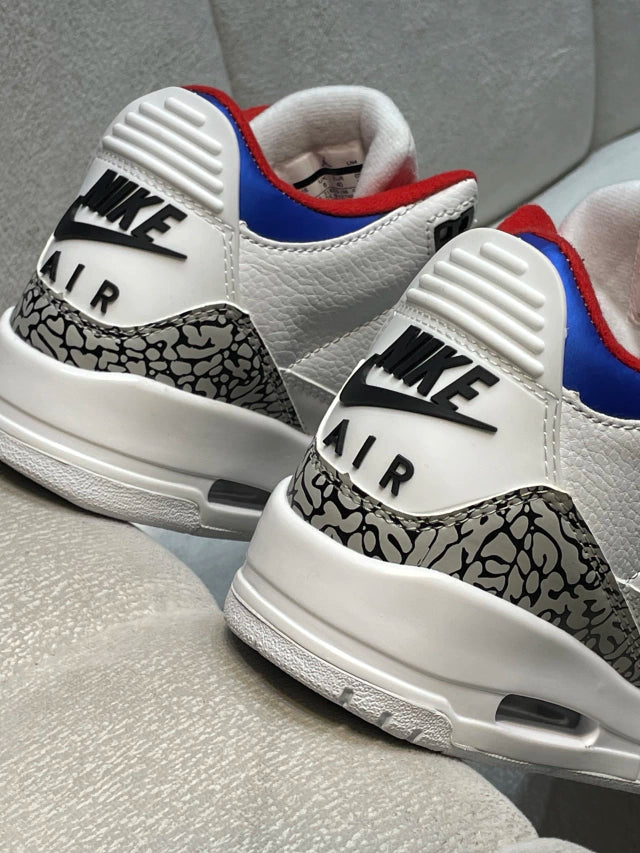 Las Jordan Retro 3 x Korea son una edición especial que rinde homenaje a Corea del Sur, destacando por su diseño en tonos blanco, negro y detalles en rojo y azul, representando los colores de la bandera surcoreana. Este modelo icónico presenta materiales premium y el distintivo elephant print, que aporta un toque clásico y sofisticado.
