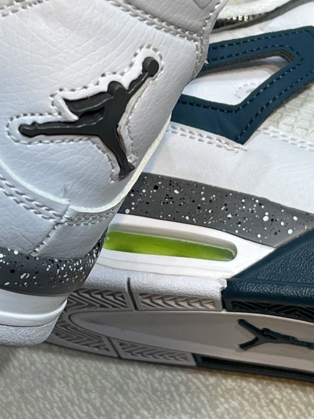 Las Jordan Retro 4 Military Blue son una silueta icónica que destaca por su elegante combinación de tonos blanco, gris y acentos en azul militar. Este modelo clásico presenta materiales premium, paneles en malla y la inconfundible amortiguación Air-Sole, que brinda comodidad y estilo en cada paso.
